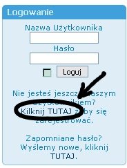 Zwróć uwagę na prawy górny róg ekranu na stronie głównej. Pod dwoma okienkami (LOGIN, HAS£O) jest krótki tekst. W niego jest wpleciony link do zakładania użytkownika (czyli wybrania swojego LOGINA- czyli Imienia pod którym będziesz widziany w serwisie).